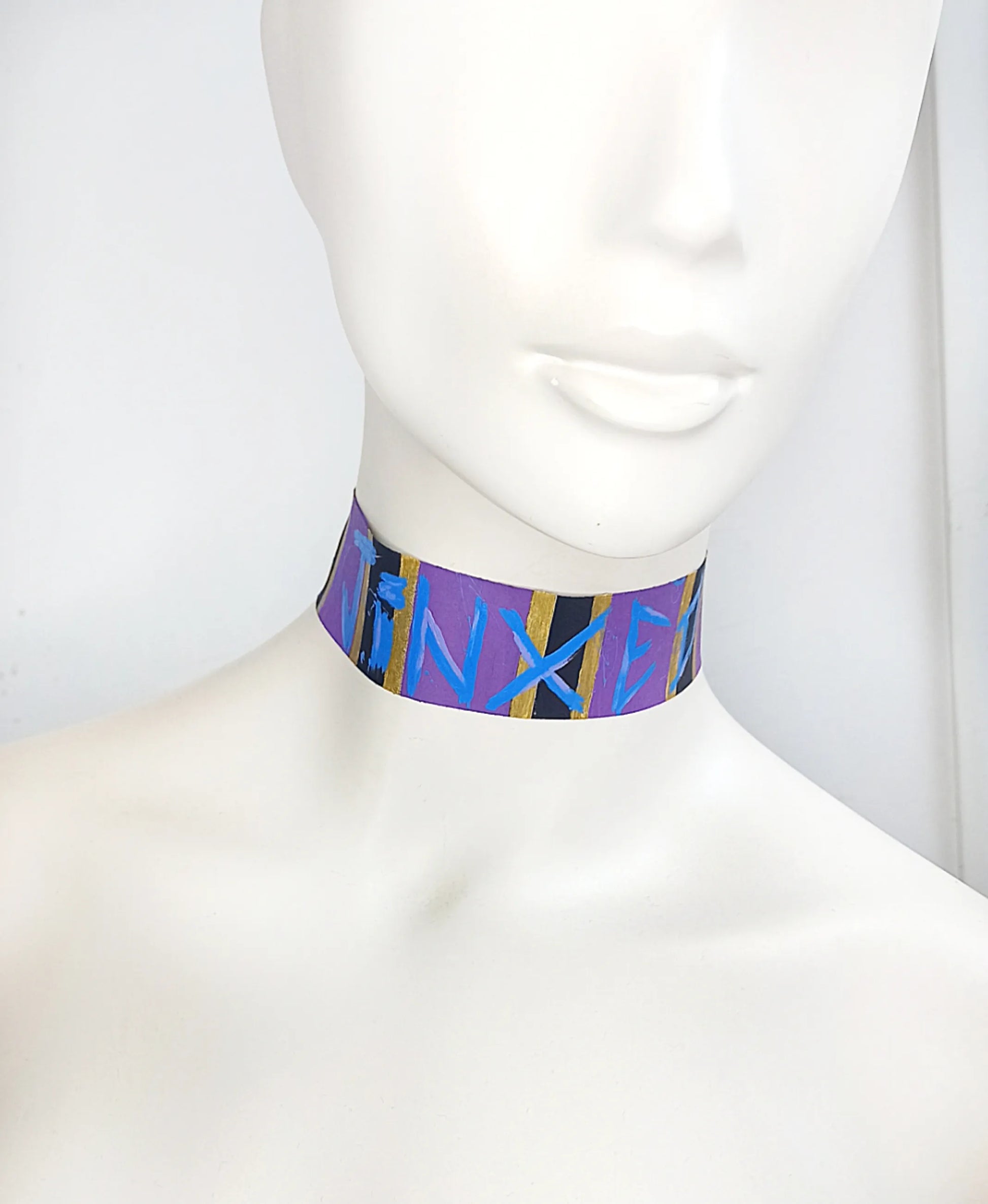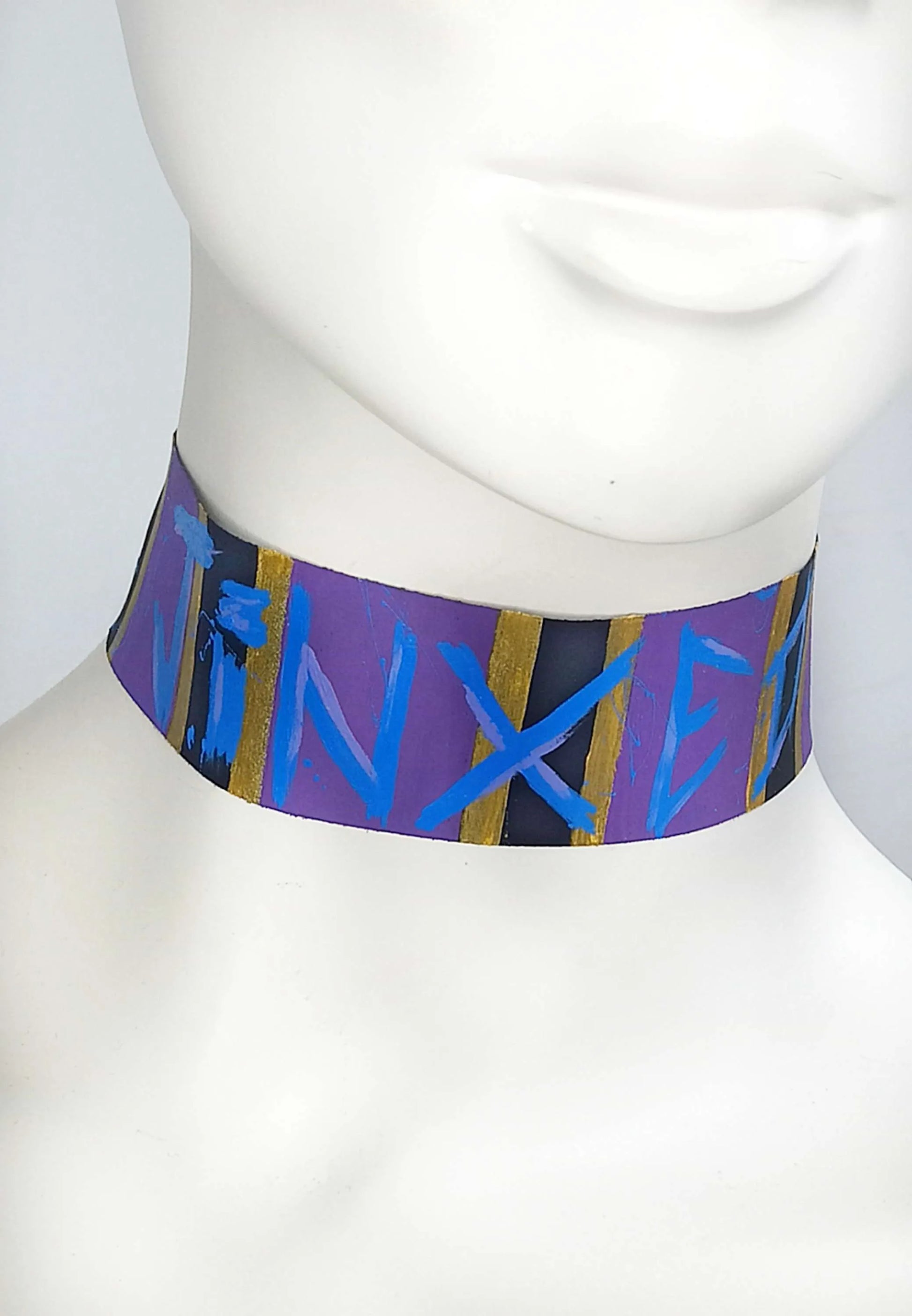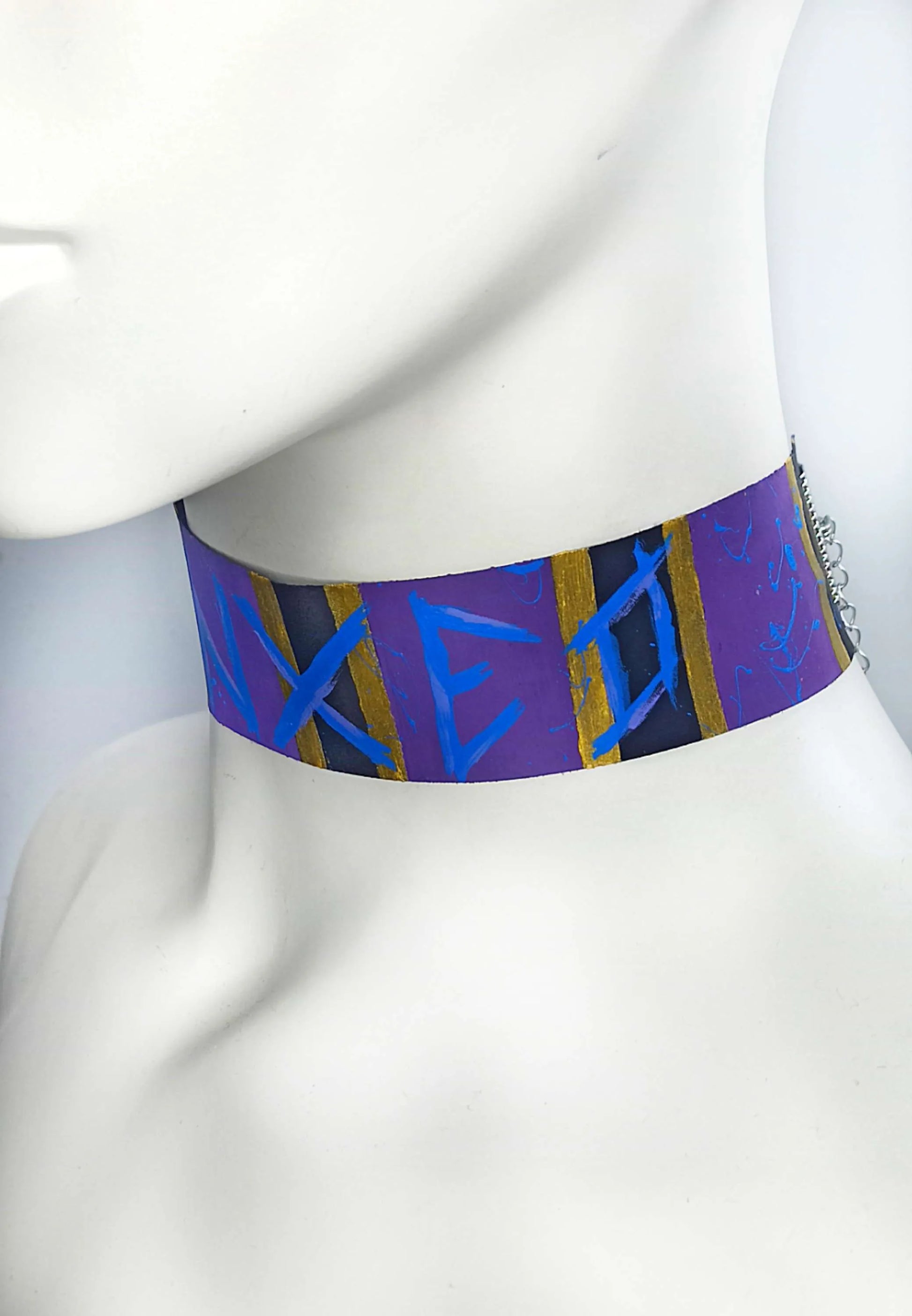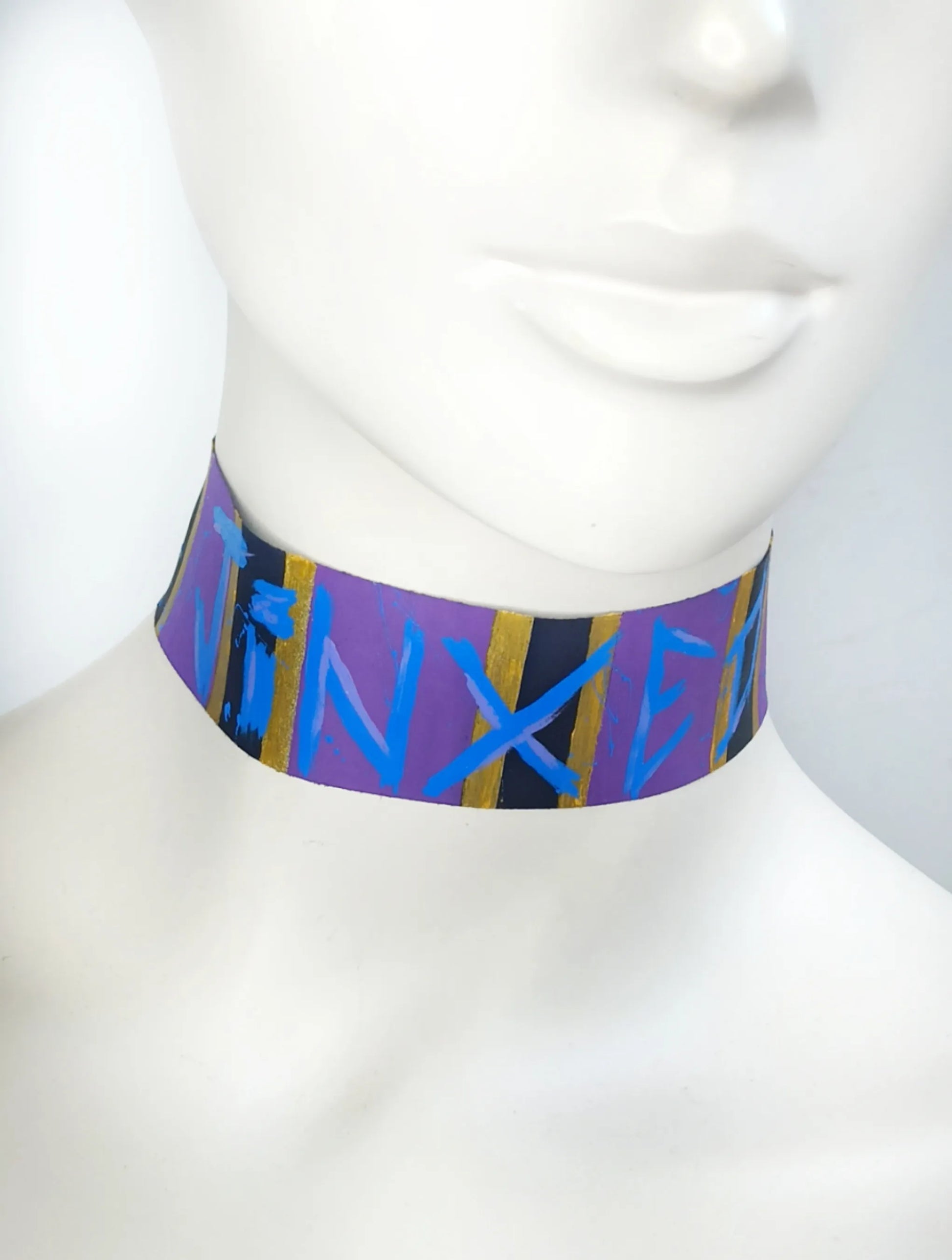 Ce ras de cou est entièrement fabriqué à la main, de la couture à la peinture. Il s’adresse aux passionné·e·s de mode alternative et culture geek, en quête de pièces aussi originales qu’engagées.