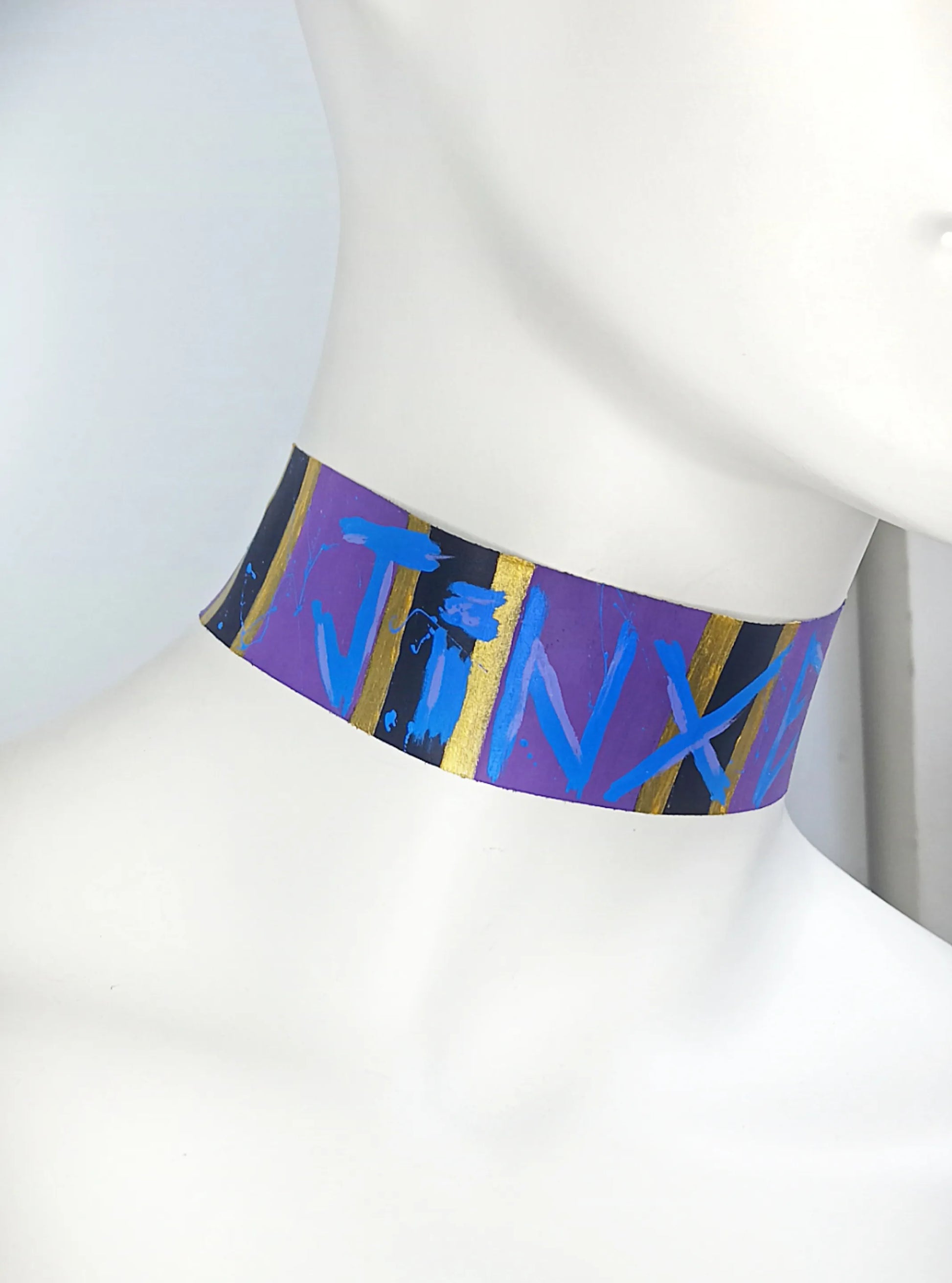 Ras de cou noir inspiré de Jinx (Arcane League of Legends) – Peint à la main, fait main, style punk