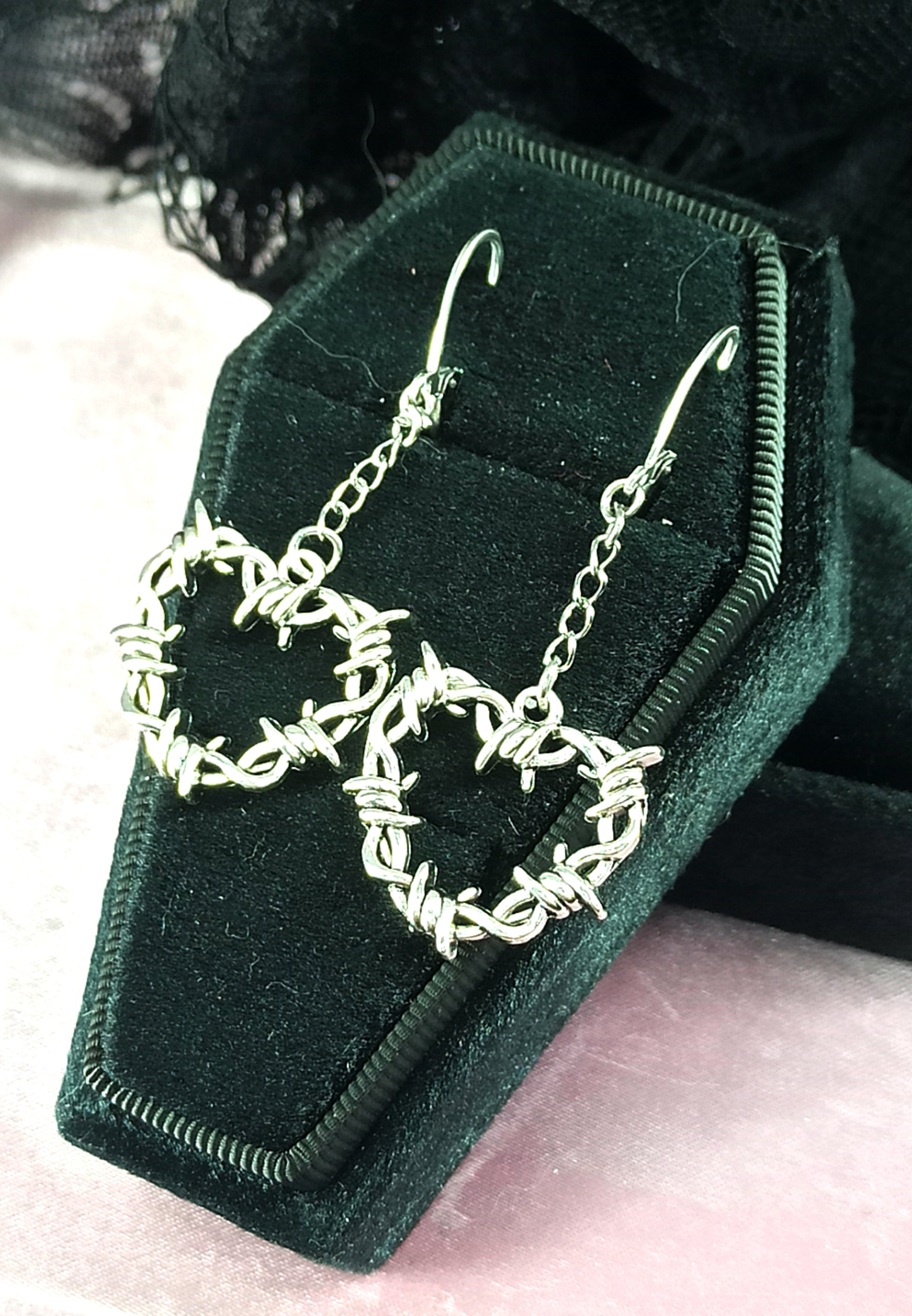 Boucles d’oreilles cœur barbelé avec chaînettes, style pastel goth. Bijou fait main, original et unique