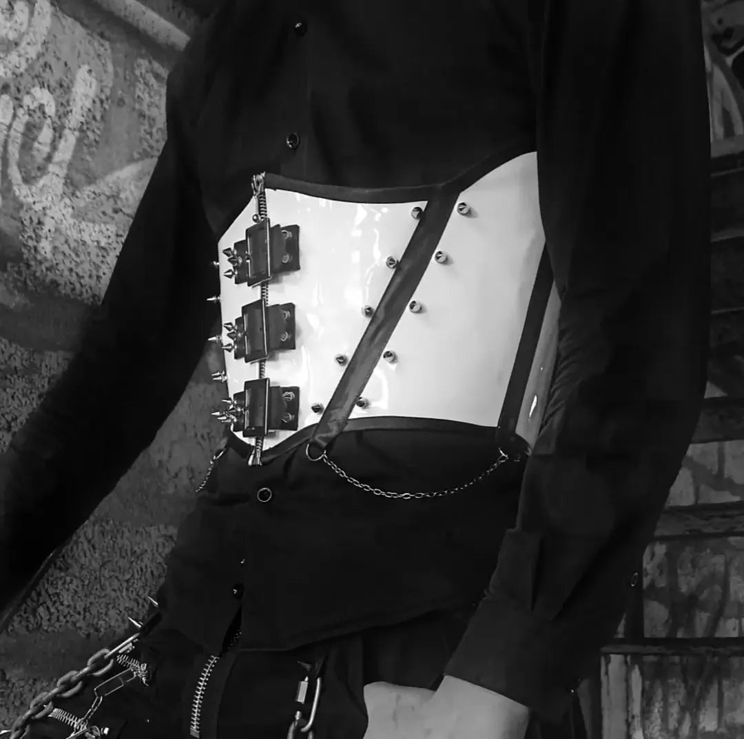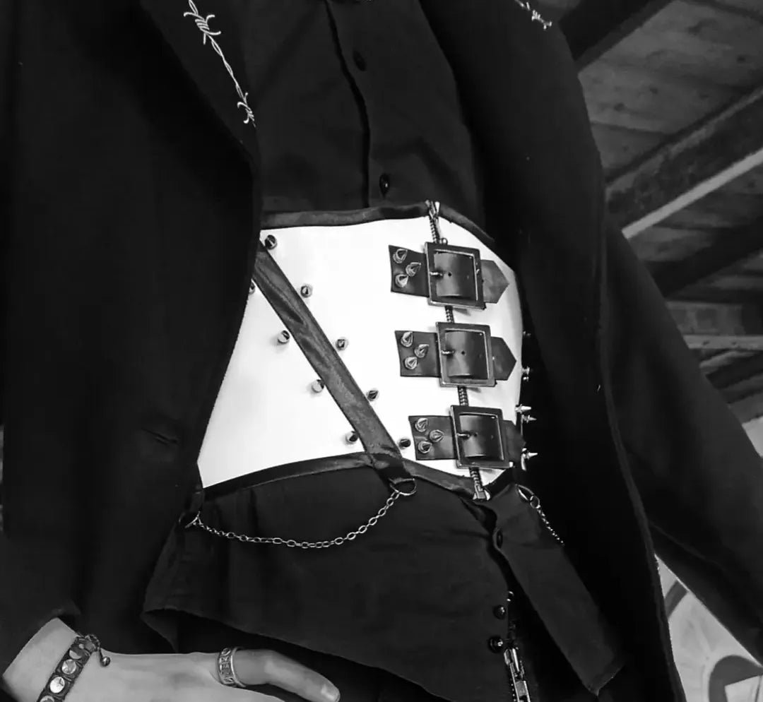 Ce serre-taille unisexe en cuir véritable blanc effet vinyle est l’accessoire ultime pour transformer n’importe quelle tenue en une déclaration de puissance visuelle. Inspiré du style fetish, goth industriel et punk couture, il s’adresse à toutes les âmes rebelles qui veulent conjuguer esthétique et structure.